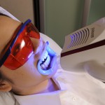 歯の色素を分解する過酸化水素を主成分とするホワイトニング剤を歯に塗った後、強い光をあてて薬剤の作用を高め、ホワイトニングをしていきます。